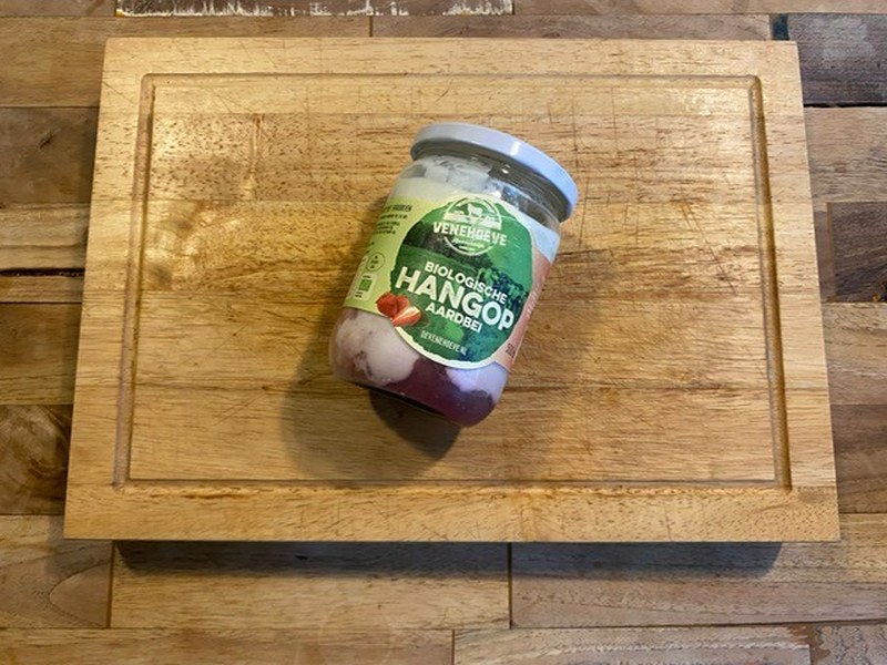 Biologische hangop met aardbeien van Venehoeve